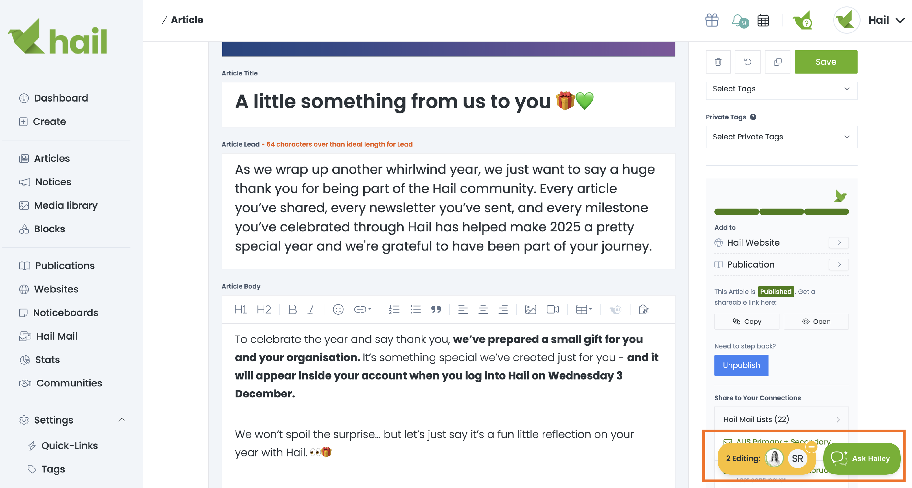 - Hail team members in your account: If you spot a Hail team member in your account- we are only there to help you! We do not count towards a seat so never take up a member spot on your account.