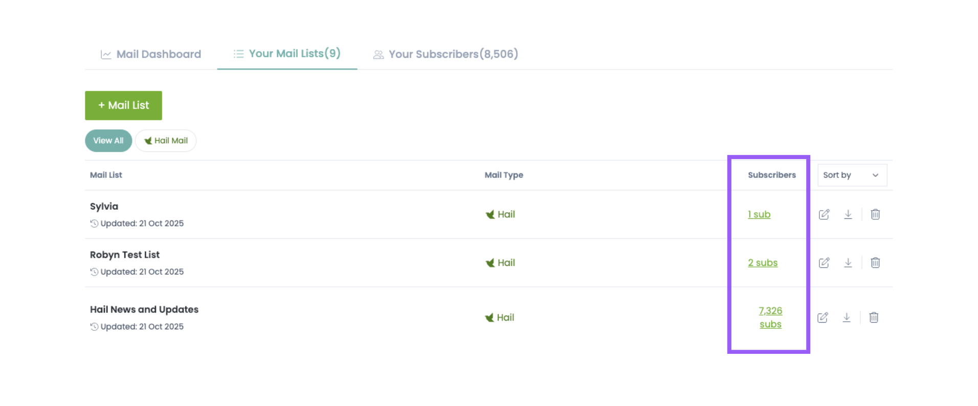 This article explains the different types of mail lists available in Hail Mail and how they work together to manage your subscriber communications.'