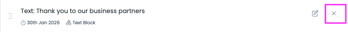 - Click the block X to Remove block. (remember this does not delete your block, simply removes it from displaying on your website)