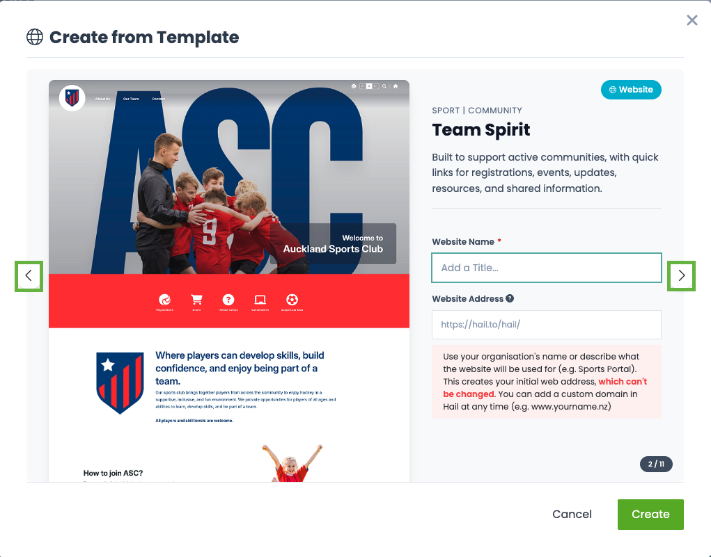 Creating and editing a Hail website from a Creative Template